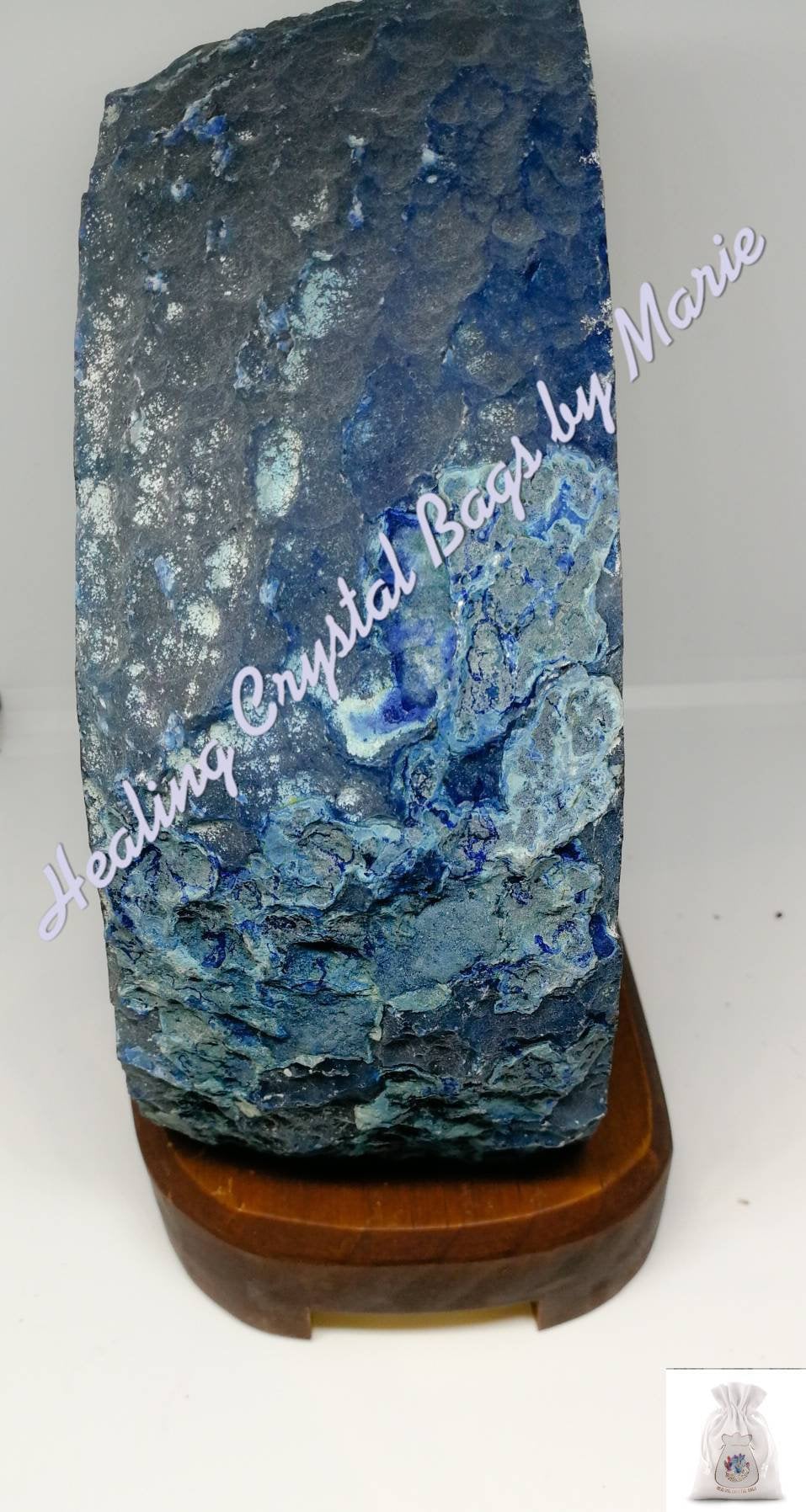 Polished Blue Agate Lamp W Wooden Base 5 4 5 Lbs
