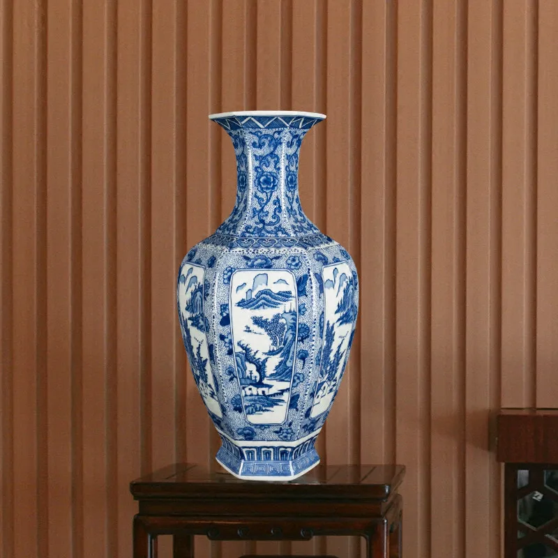 Antique Vintage Home Decoration Ceramic Vase Hexagon Blue And