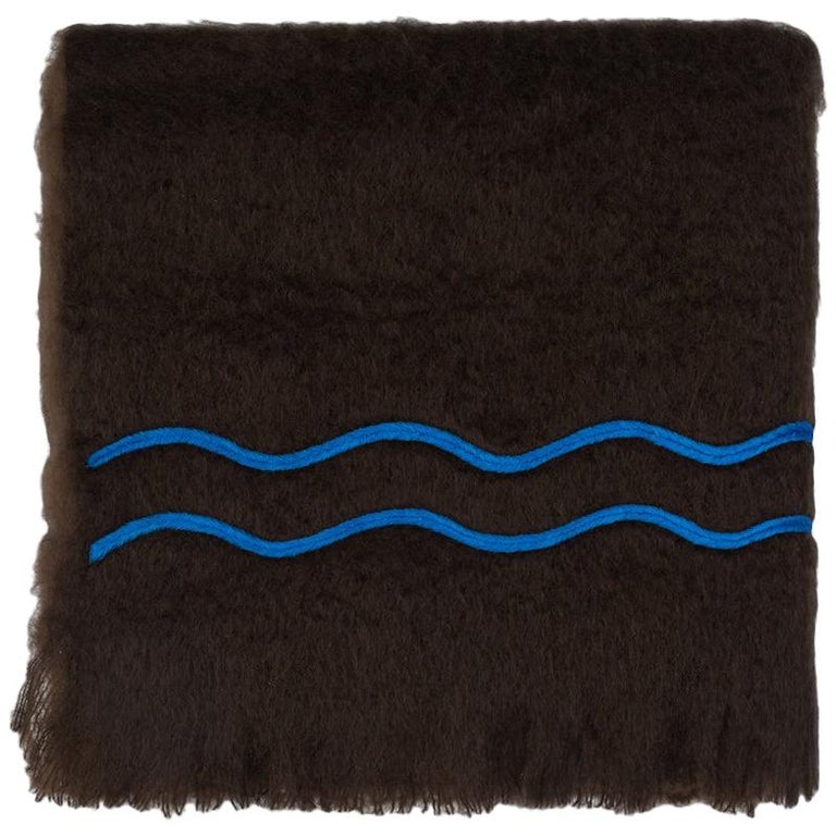 Blue And Brown Stripe Mohair Throw Blanket Maison Midi