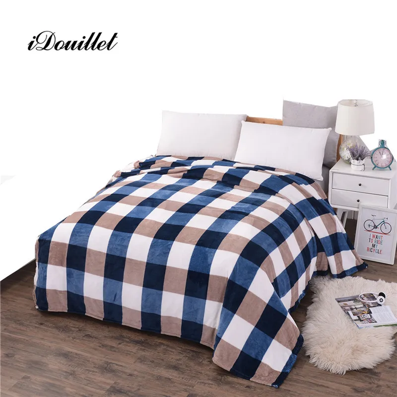 Idouillet Plaid Fleece Blanket Throw Lightweight Flannel Check Bed