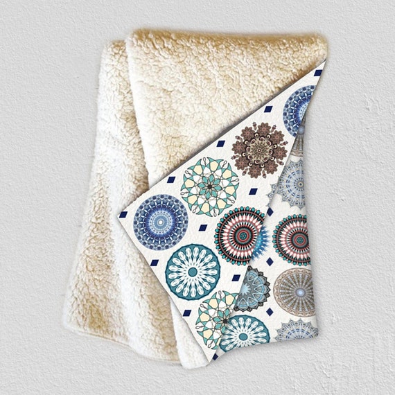 Blue And Brown Mandala Sherpa Fleece Throw Blanket 30x40 Etsy